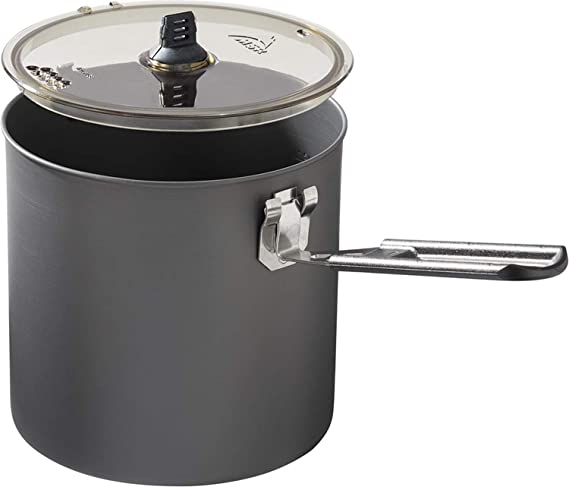 The Trail Lite 2 Liter pot delivers the lightweight performance of aluminum with the strength of a hard-anodized finish, making it the foundation of a cook kit that will last. With capacity for 2 backpackers, the taller design helps save space in smaller packs. An excellent water-boiler for simple backcountry meals, this pot features room for mugs and utensils or a small stove, and a folding/locking handle to keep it all in place.