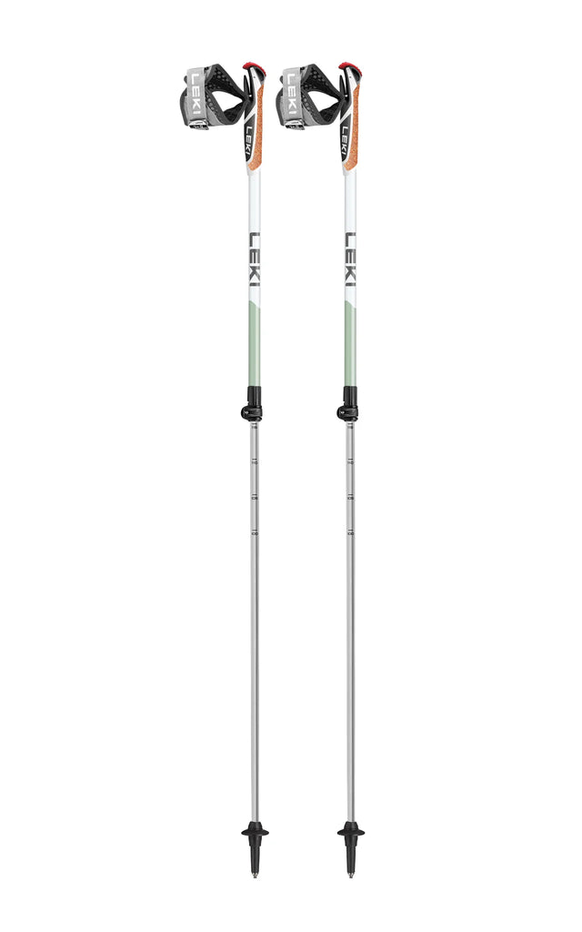 The SPIN SHARK is a durable two-piece Nordic Walking pole made from hardened HTS 5.5 Aluminum that supports you in any terrain. The two-component cork grip, combined with the LEKI Trigger Shark 2.0 grip and a breathable mesh strap, ensures a seamless connection to the pole, providing you with a full-body workout. The LEKI Nordic Walking Poles strap can be removed from the grip in an instant with the push of a button. Thanks to the Speed LockPlus locking system, these LEKI walking poles are effortlessly adjustable between 100-130 cm, allowing you to customize them to your preferred length. The SPIN SHARK comes with a carbide tip for natural environments and a rubber tip for use in urban/indoor environments, making them versatile for various walking conditions.