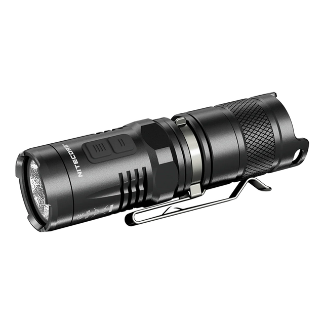 **Battery and Charger are not included**Super Bright with Red Light IlluminationCarry light everywhere you go with the NITECORE MT10C super bright, 920 lumen, compact, tactical flashlight. The MT10C boasts a powerful red light suitable for outdoor applications that preserves night vision while hunting without attracting insects. The red light beacon serves as a signal light for emergency situations. It has 5 brightness levels with a maximum throw of 207 yards on Turbo and runtime up to 170 hours on Low.Tactical and Side Switches for Easy OperationA tactical tail switch enables you to access momentary and constant illumination with one handed operation. The side switches control access to red light illumination and 5 distinct brightness levels.Compact and Robust Body for Everyday CarryAt 3.6 inches long, the MT10C’s robust aluminum, anti-rolling body makes it suitable for all weather and terrain operations. The stainless steel titanium-plated clip makes it an everyday carry in your pockets, bags and gear.